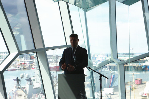 冰岛财务部部长比亚德尼·贝内迪克松在签约仪式现场发表讲话