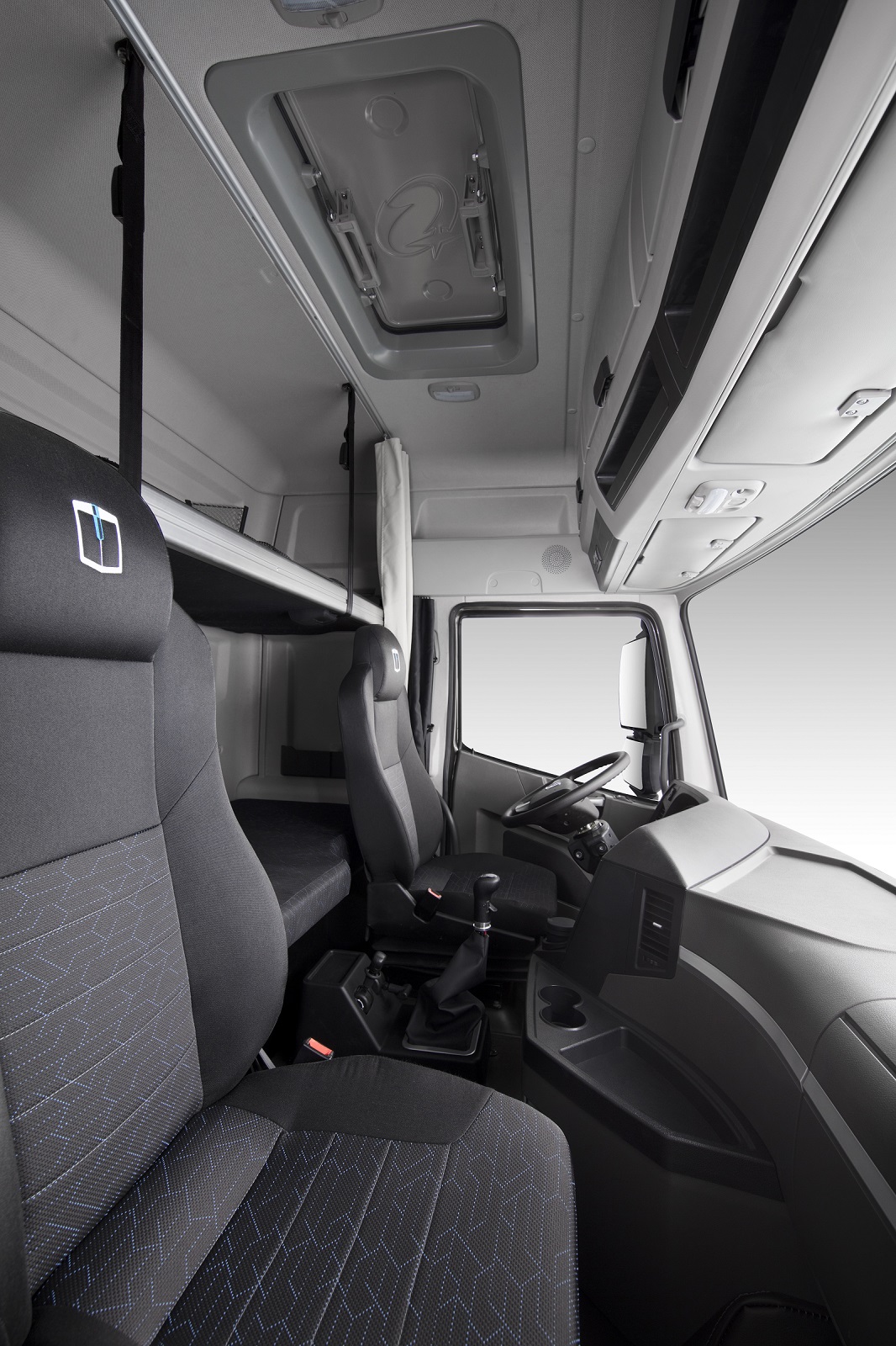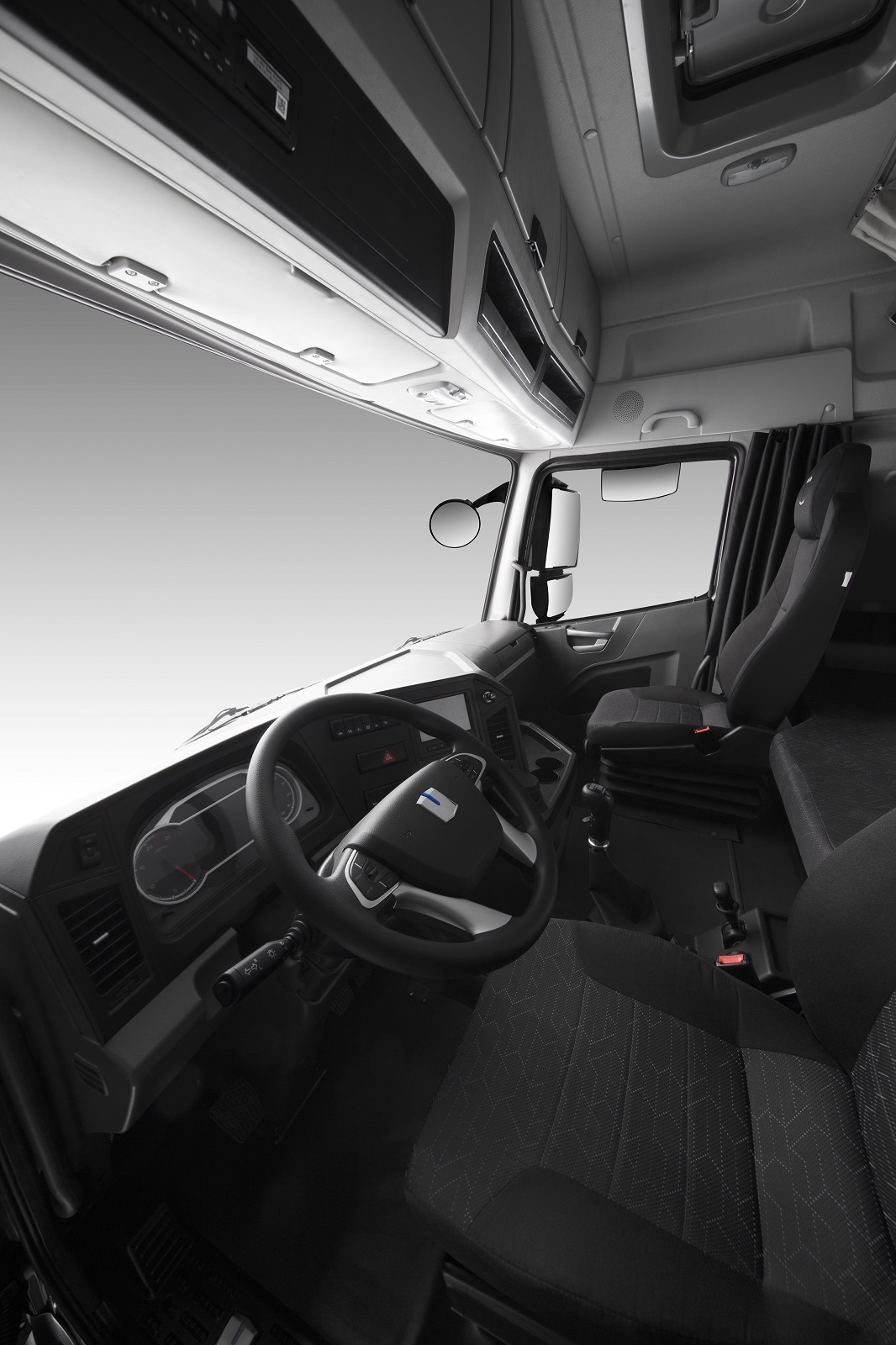 远程甲醇重卡采用框架式结构白车身,满足ECE R29-03版欧洲碰撞法规要求,同时,左/右侧后视镜下方的摄像头解决了庞大车身的盲区问题,更好的保护了驾驶员及行人的安全。
