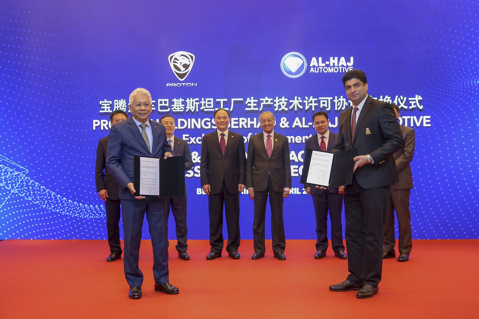 (2019年4月26日,北京)时值第二届“一带一路”国际合作高峰论坛召开之际,在马来西亚总理马哈蒂尔见证下,宝腾汽车与巴基斯坦阿吉哈汽车集团举行生产技术许可协议交换仪式,将在巴基斯坦卡拉奇建设海外全散装件组装工厂,加速宝腾进军南亚市场。同时宝腾汽车与中国建设银行举行融资文件交换仪式,将获得总额达18.88亿马币(折合人民币约31亿)的贷款,用于研发技改和工厂扩建投资。这是中国、马来西亚、巴基斯坦三方深入合作,打造的“一带一路”共建典范。